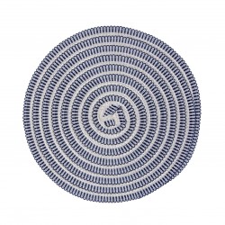 DESSOUS DE PLAT ROND BLEU FONCÉ ET BLANC Referencia: 22400147 Medidas: 38x38x1 Ø38 cm. Material: Polypropylène Packaging: SAC PLASTIQUE Info: 30% Coton, 20% polyester et 50% écorce de maïs.
