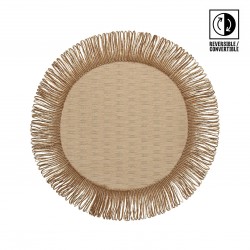 DESSOUS DE PLAT RÉVERSIBLE NATUREL Referencia: 22400150 Medidas: 38x38x1 Ø38 cm. Material: Papier Polyester Packaging: SAC PLASTIQUE Info: 30% Coton, 20% polyester et 50% écorce de maïs. 95% Papier 5% polyester.