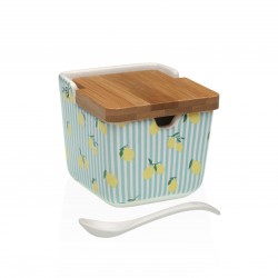 SUCRIER CITRONS Referencia: 22110080 Medidas: 8x8x8 cm. Material: Bambou Dolomite Porcelaine Packaging: BOÎTE MARRON Info: Dolomite sugar jar with bamboo lid Porcelain spoon included
