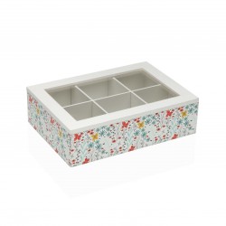 BOÎTE À THÉ FIORELLA 6 EMPLACEMENTS Referencia: 21920348 Medidas: 24x17x7 cm. Material: Verre Bois Packaging: SAC PLASTIQUE Info: Certificado: FSC Propre conception