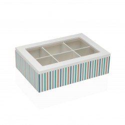 BOÎTE À THÉ RAYAS 6 EMPLACEMENTS Referencia: 21920357 Medidas: 24x17x7 cm. Material: Verre Bois Packaging: SAC PLASTIQUE Info: Certificado: FSC Propre conception