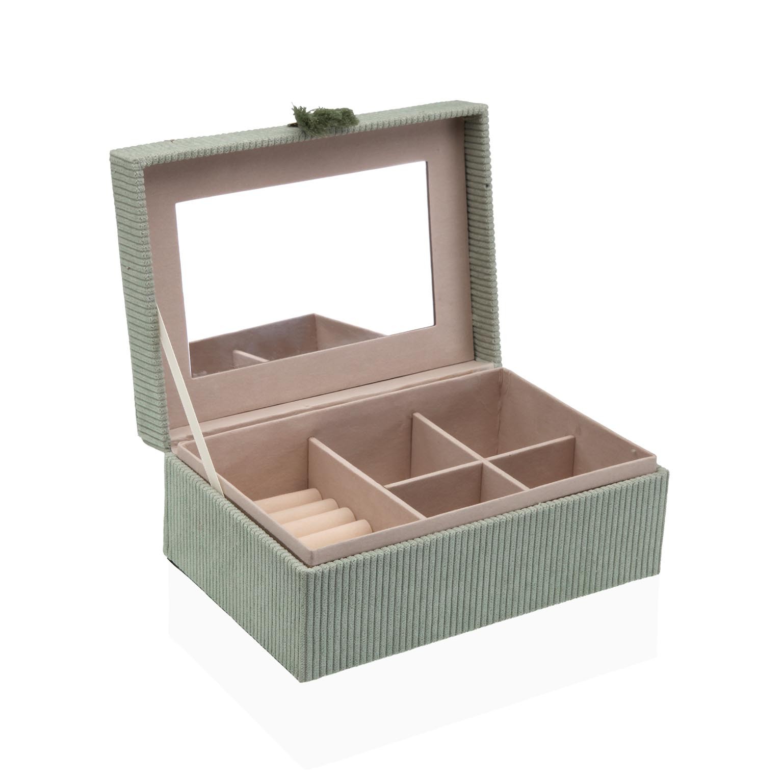 La boîte à bijoux en velours vert menthe allie élégance et fonctionnalité.