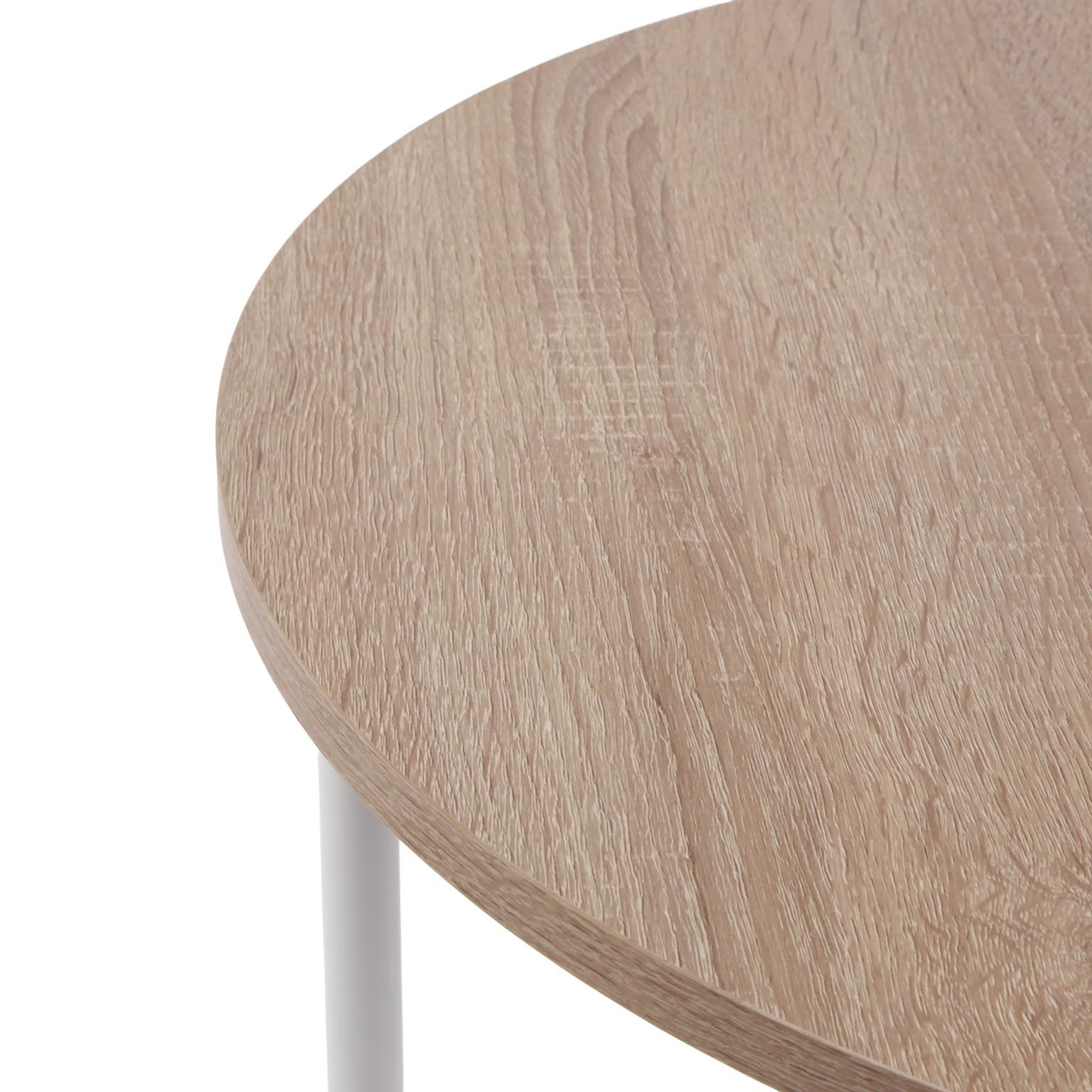 Sa structure en métal blanc et son plateau en bois clair apportent une touche minimaliste, tout en offrant une polyvalence d'utilisation.