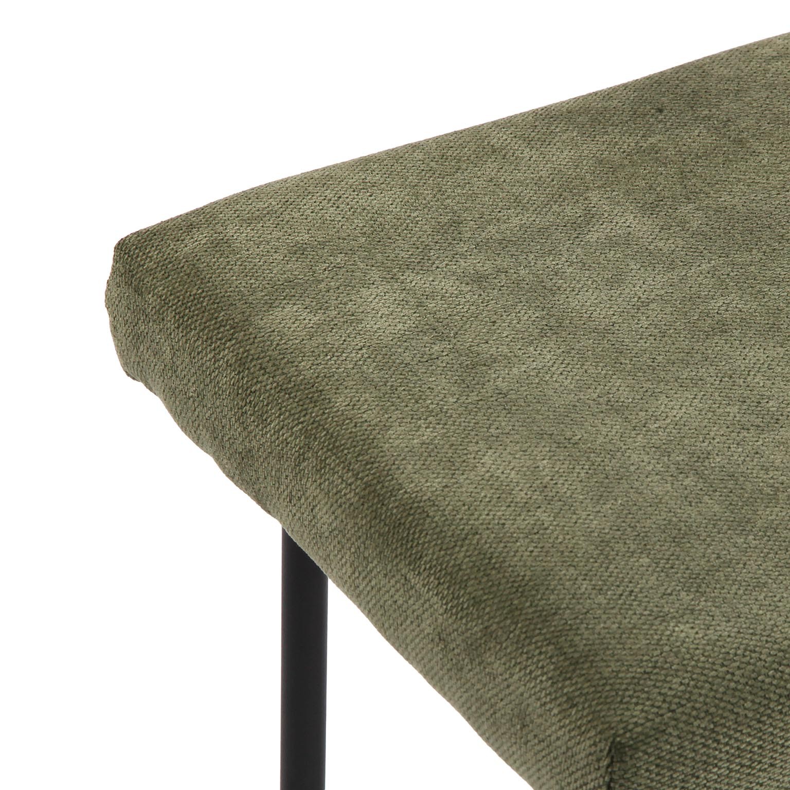 Avec sa structure en acier noir et son assise en textile, il mesure 91 cm de long, 40 cm de large et 46 cm de hauteur, offrant une hauteur d'assise de 38 cm.