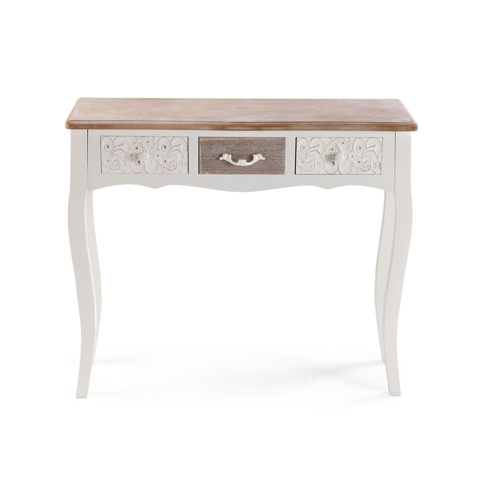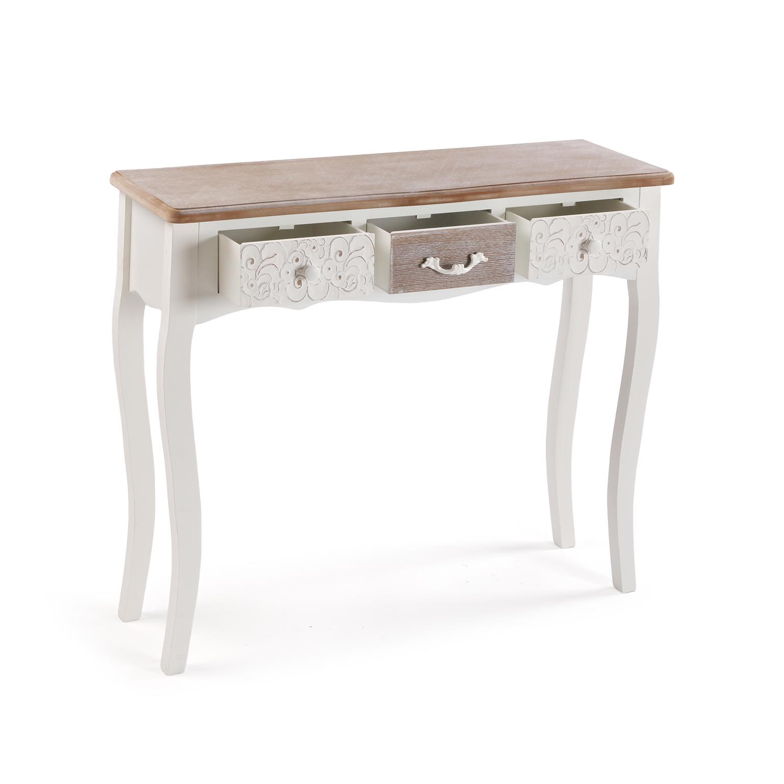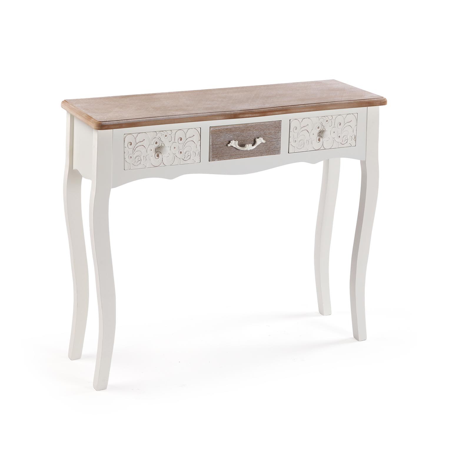 Découvrez la console rustique blanche à 3 tiroirs, un meuble auxiliaire alliant charme et fonctionnalité.