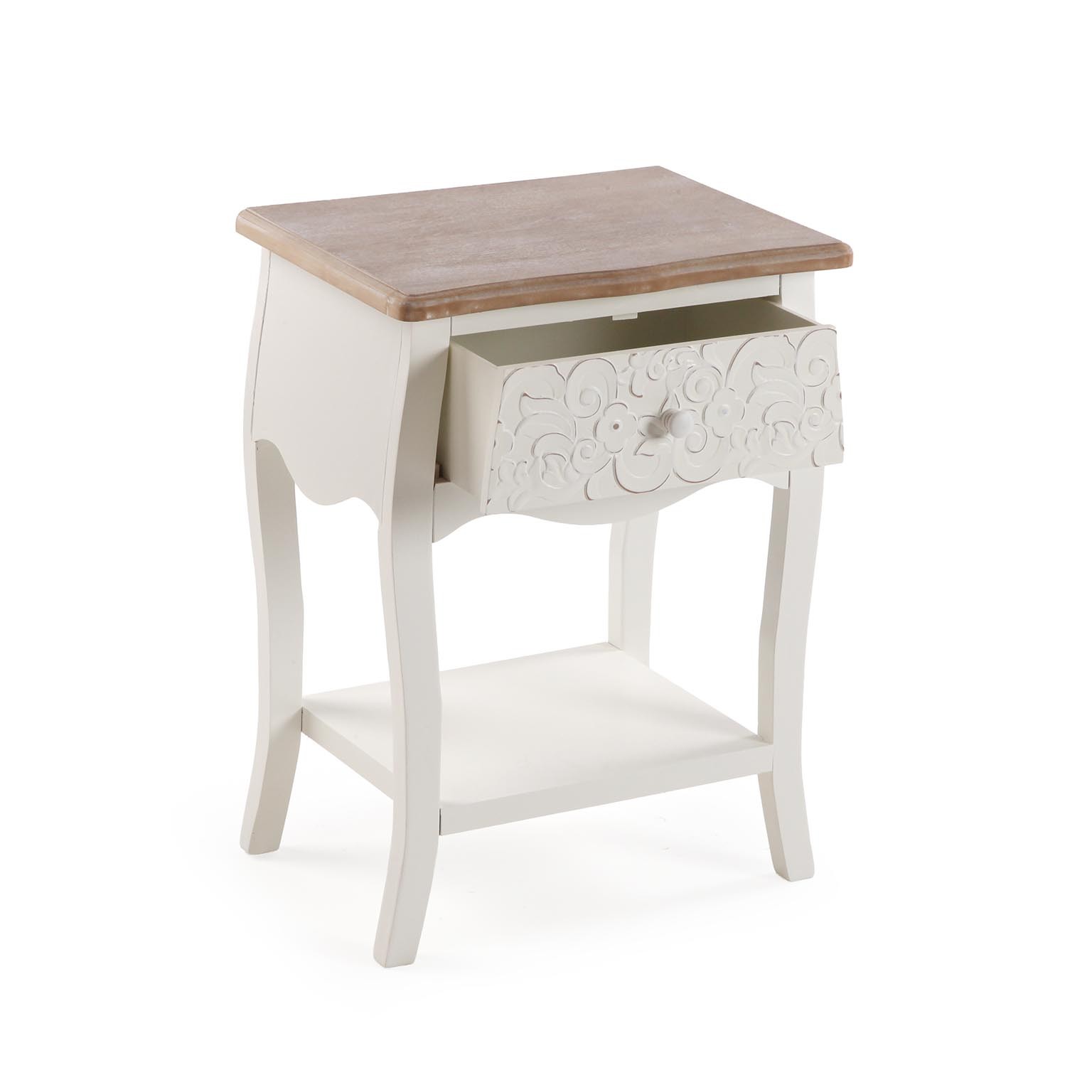 Sa finition blanche et ses éléments sculptés apportent une touche chaleureuse à tout espace.