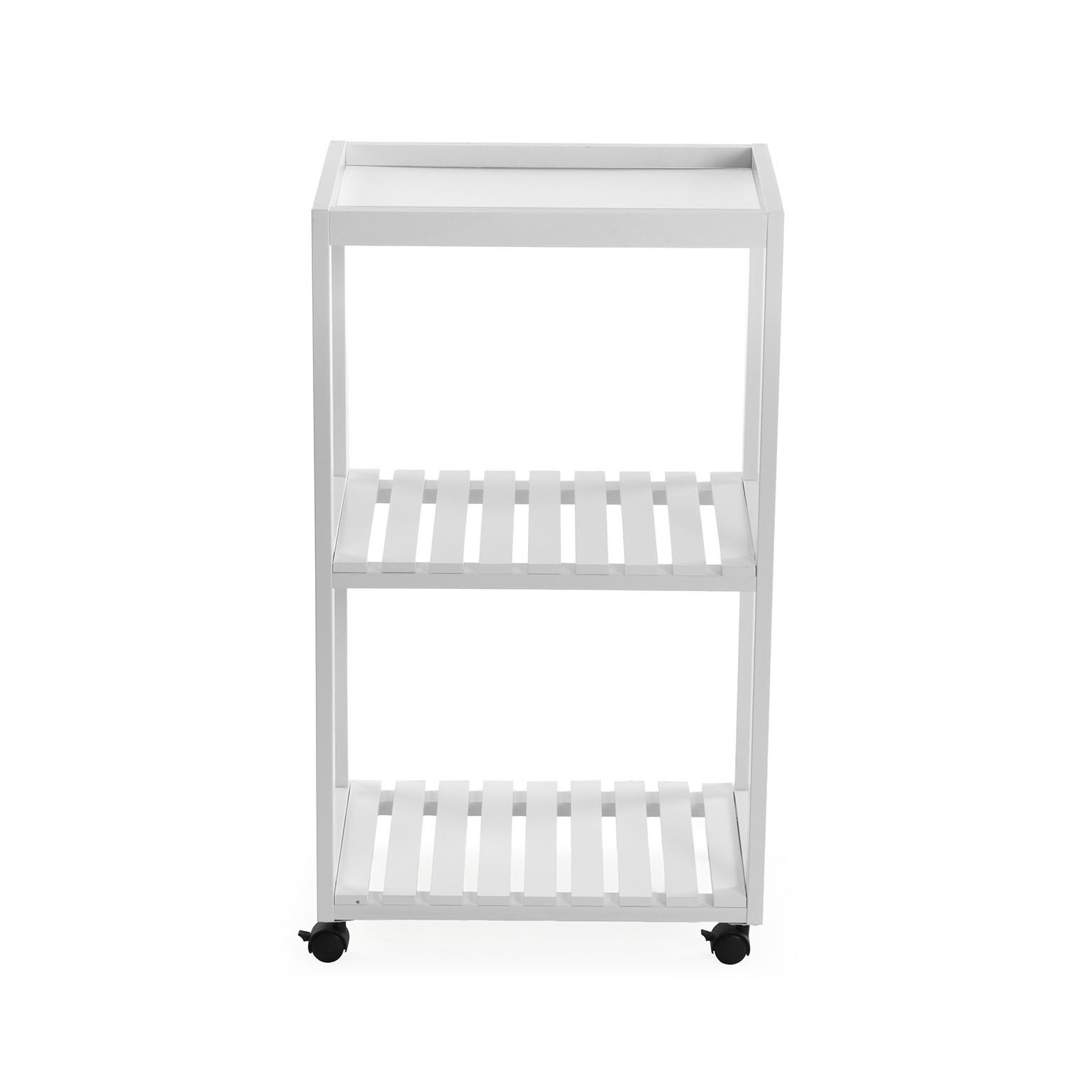Optimisez l'organisation de la salle de bain avec ce chariot à 3 niveaux blanc, conçu en bois MDF.