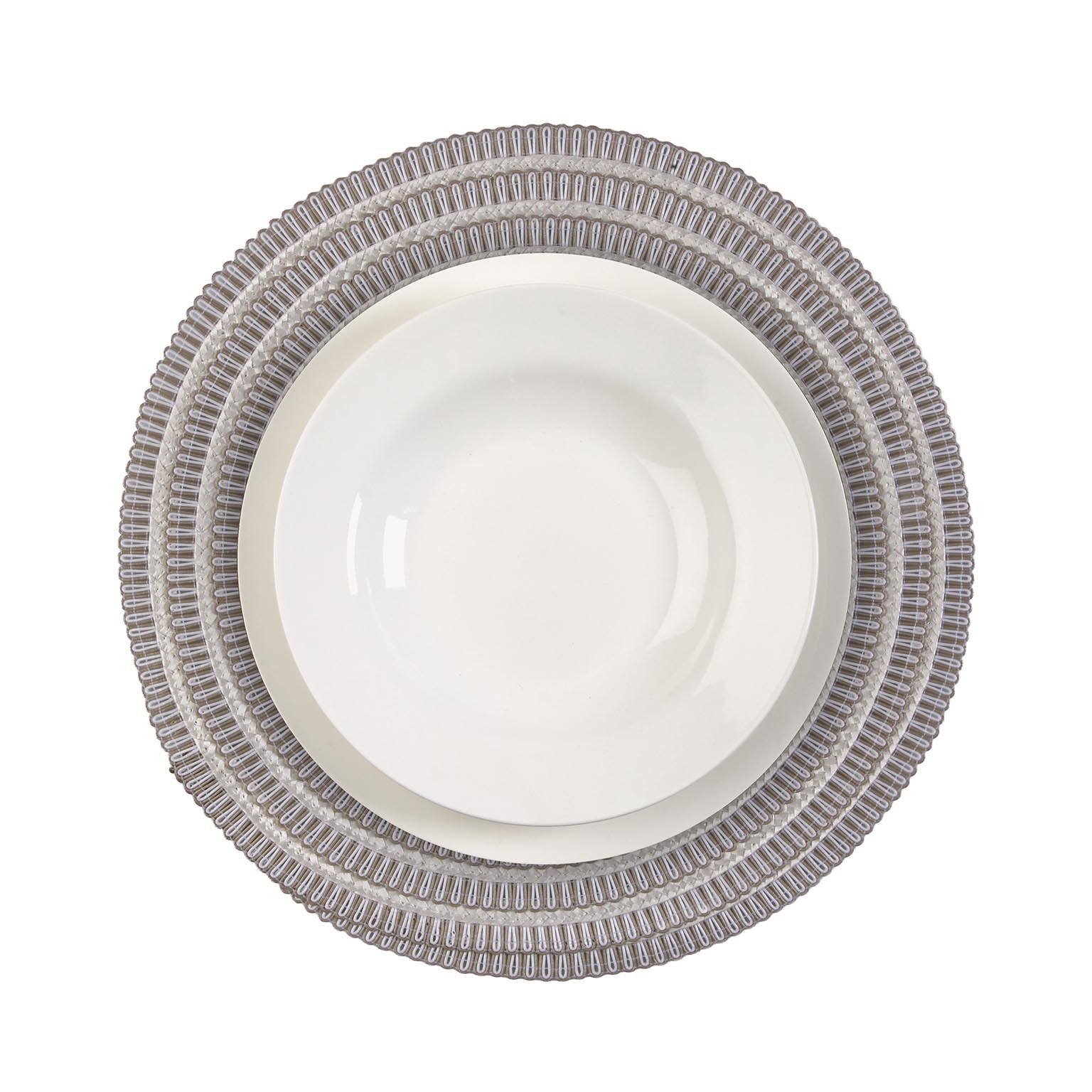 Ajoutez une touche d'élégance à vos tables avec ce dessous de plat rond beige et blanc.