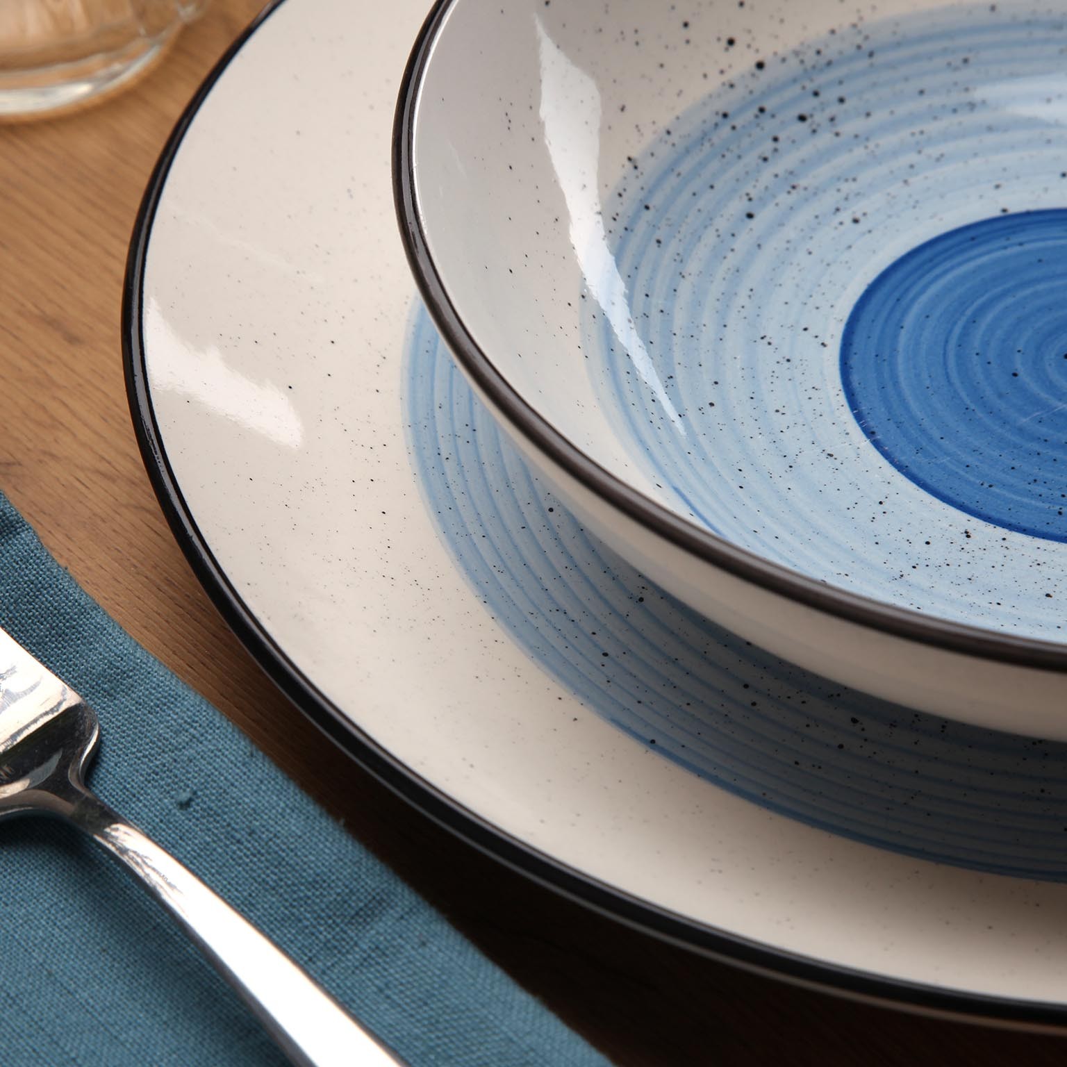 Le service de table 18 pièces Morgan bleu allie élégance et fonctionnalité.