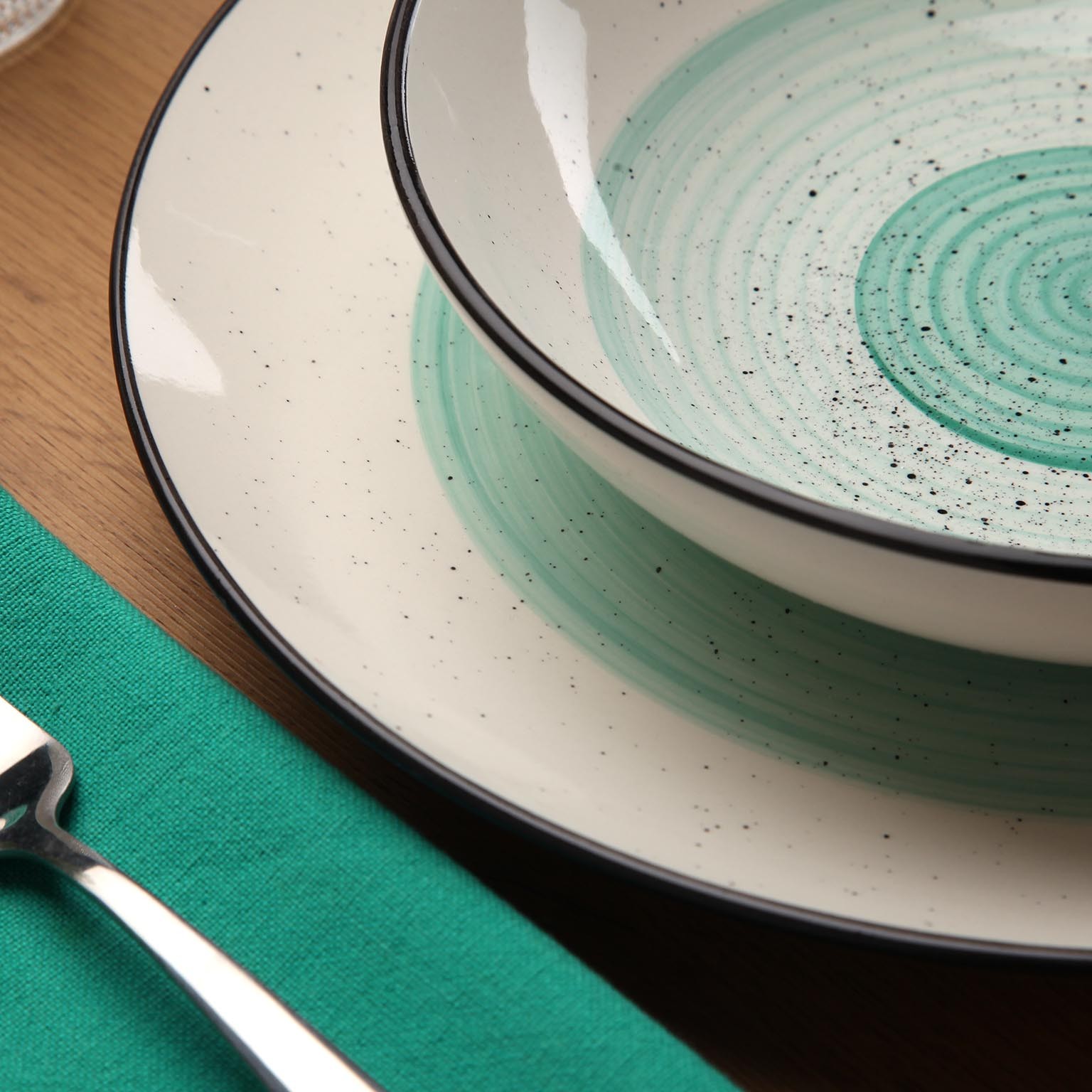 Le service de table 18 pièces Morgan vert est un ensemble de vaisselle moderne en dolomite, alliant esthétique et fonctionnalité.