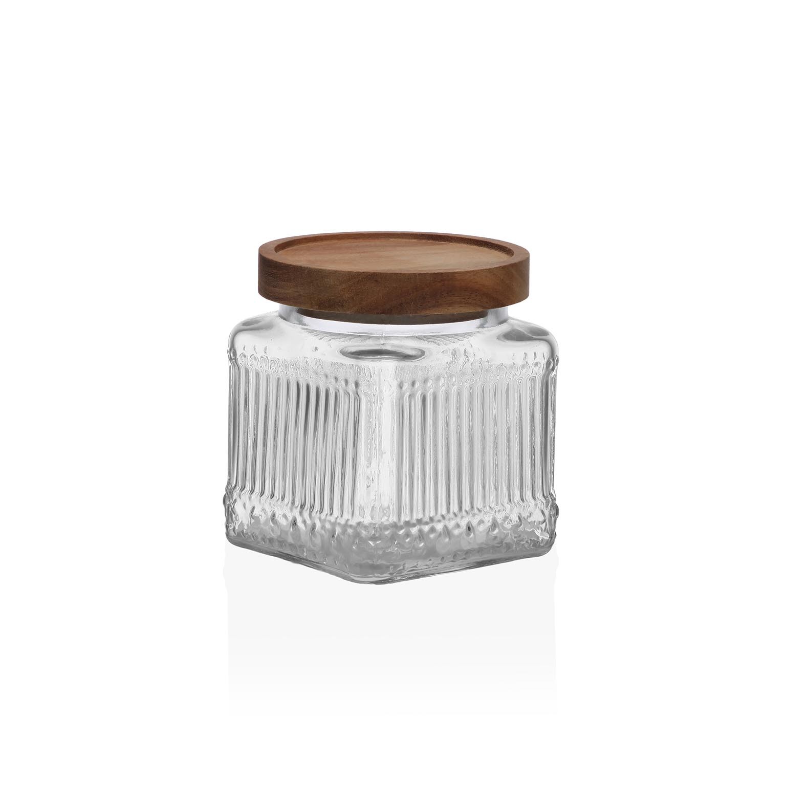 Le corps en verre transparent permet une visibilité optimale du contenu, tandis que le bouchon en bois d'acacia apporte une touche rustique et chaleureuse.
