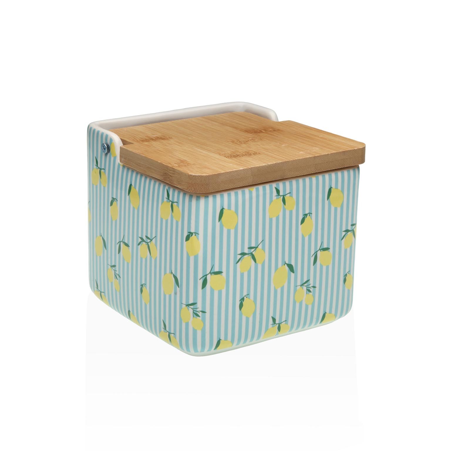 Ses motifs de citrons jaunes et ses rayures bleues apportent une touche estivale à toute cuisine.