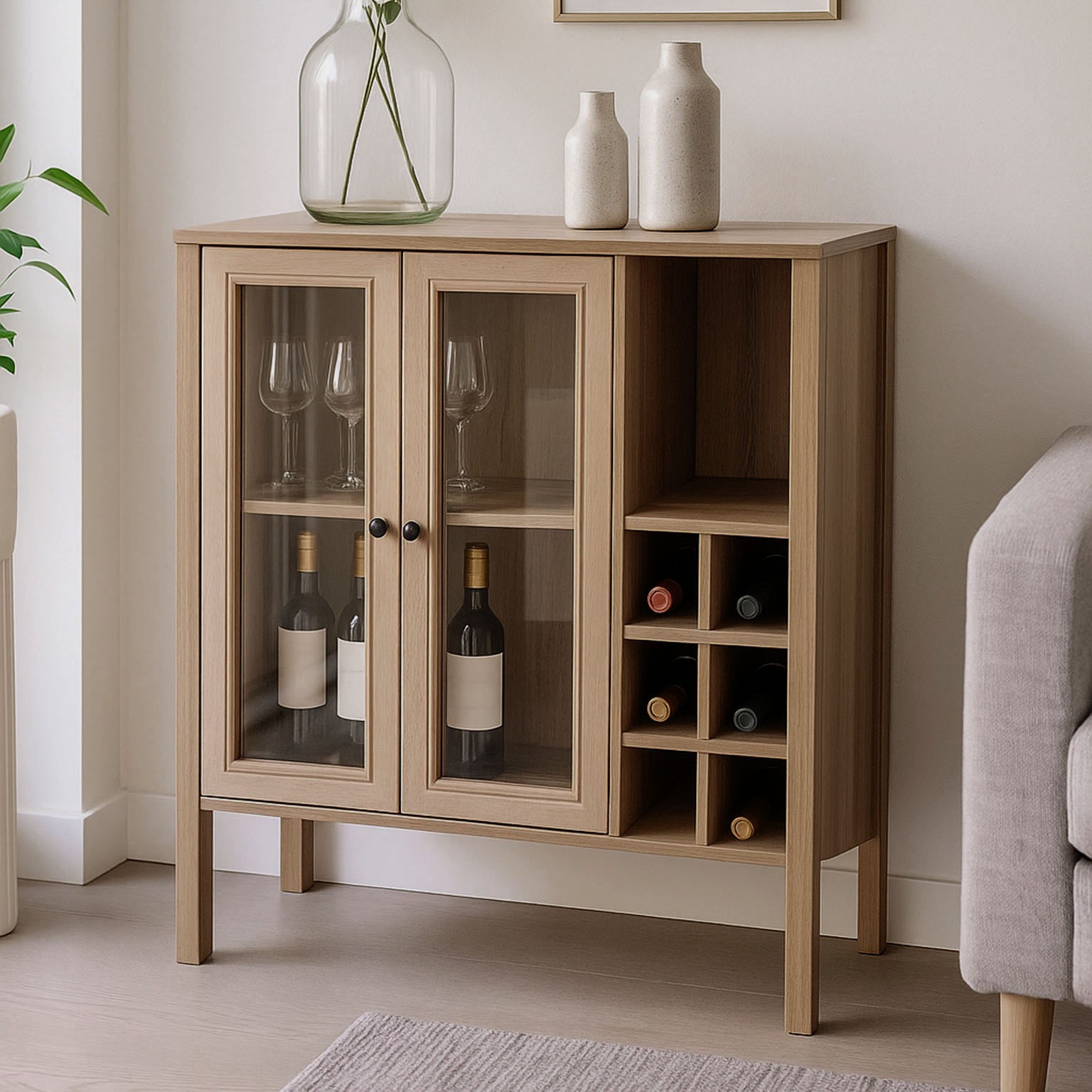 Le buffet Lyden 2 portes avec casier à vin allie fonctionnalité et esthétisme moderne.